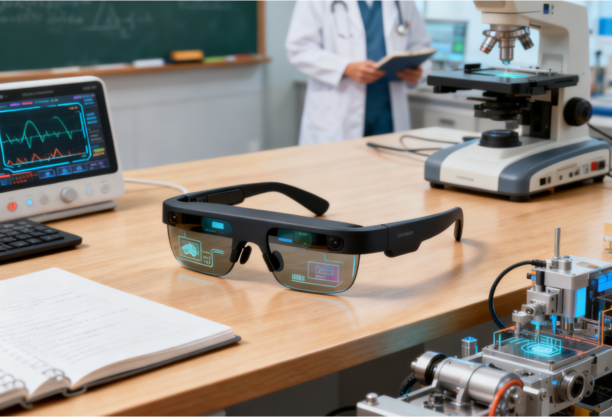 随着AI加持、波导技术发展以及碳化硅材料的助力,AI/AR智能眼镜在近年来形成了爆发式增长。显示效果日渐成熟整机重量逐步降低功能越来越齐全多样化使得智能眼镜能广泛应用于各种各样的场景例如医疗领域、消费领域、教育培训运动休闲工业远端智慧制造