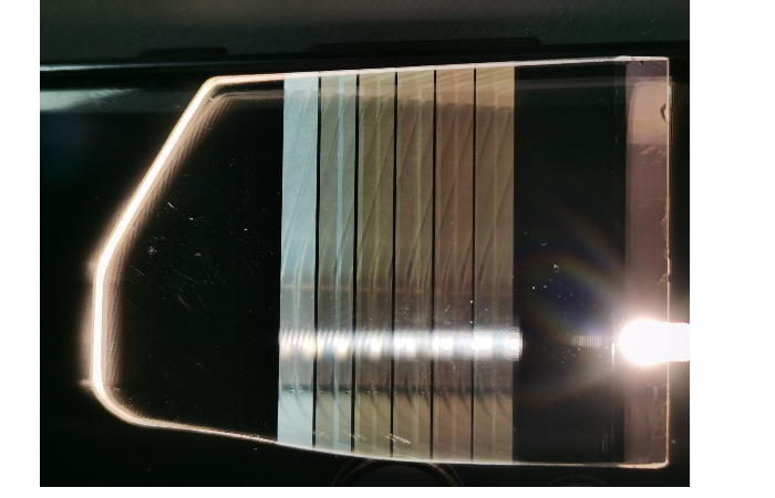 胶合好的玻璃坯料需要按照严格计算好的特定角度进行切割和抛光,这个角度直接决定了光线能否以正确的方向耦入和耦出波导,是实现全反射传光的基础。切割过程对刀具和工艺稳定性要求极高,以确保切割面的平整和角度的精确。传统的金刚石线锯切割容易导致边缘崩边,而最新的技术采用贝塞尔激光切割,通过将激光光斑整形为椭圆形或线形,可以有效减少崩边,提升切割面的平整度和强度。切割及研磨完成后将得到光学元件。