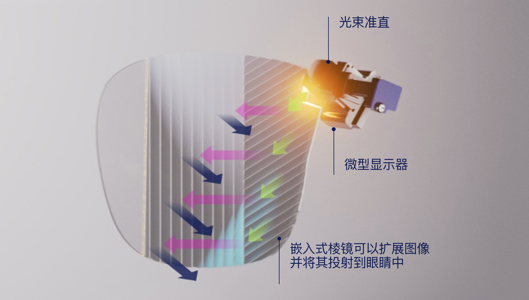 2016年在CES上展出的阵列光波导产品已实现1080p分辨率和60度视场角,并将镜片厚度做到了1.6毫米,使AR眼镜外观趋近普通眼镜成为可能。2025年Meta发布的Meta Ray-Ban Display采用了豪威LCoS面板+Lumus 阵列光波导技术,实现高效光传输(光效超10%)和低杂散光控制。