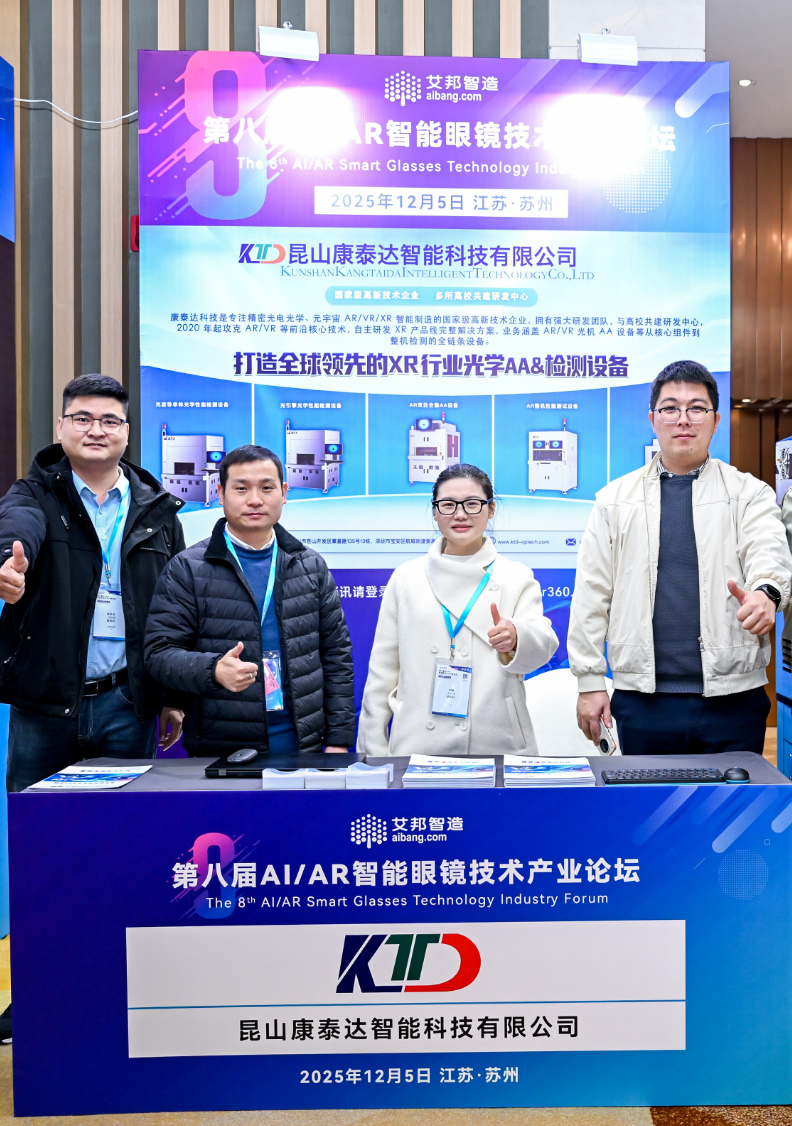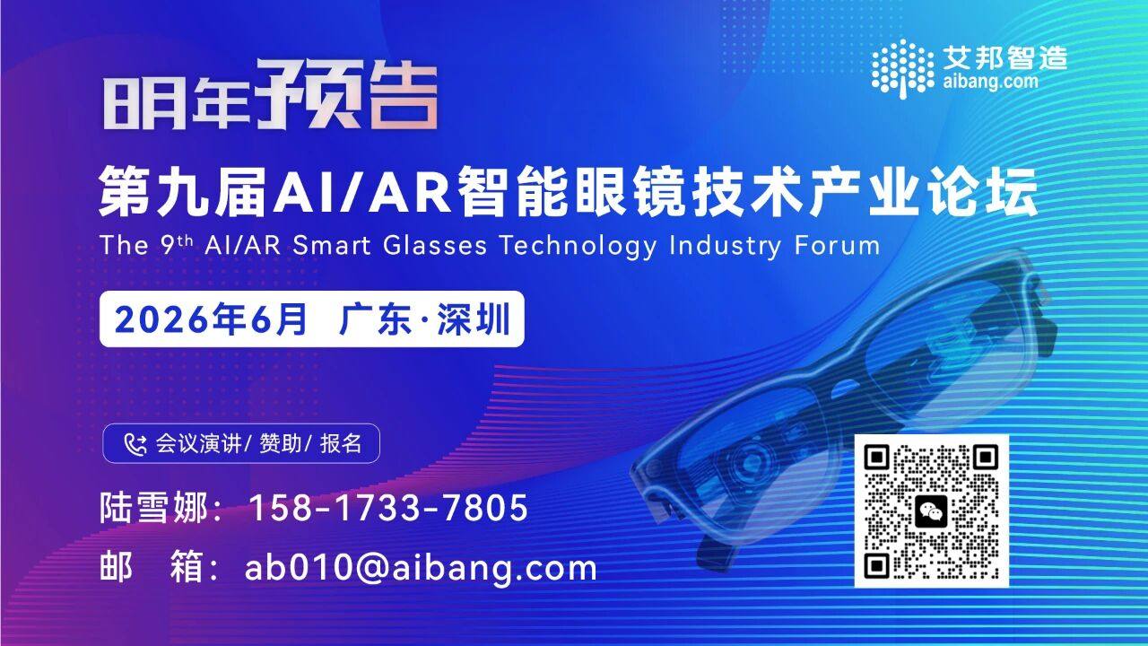 随着AI 与 AR 技术的深度融合,智能眼镜市场在 2025 年迎来了爆发式增长。2025年上半年全球智能眼镜(Smart Glasses)出货量同比暴增 110%,其中 AI 赋能的智能眼镜占比高达 78%,远高于 2024 年上半年的 46% 与下半年的 66%,展示出行业的转折性跃升。 为探讨如何实现上下游协同创新,突破关键技术瓶颈,量产与成本控制得当,推动产业链健康发展等智能眼镜大规模落地的核心问题,12月5日,艾邦邀请了14位产业链专家做精彩分享,同时还有11家展台赞助以及超过200位行业代表莅临参与。下面将从主题演讲、展台展示、现场花絮以及会议预告四方面为此次活动做个总结。 一、主题演讲 1.消费级智能眼镜的应用落地与场景拓展——仙瞬 市场中心总经理 刘羽思 仙瞬科技成立于2022年12月,公司成功开发了全球最小的近眼显示光学系统:Digiwindow。2025年初,仙瞬科技的 Digiwindow 光学方案运用在 Halliday AI 智能眼镜上,该眼镜含镜片重量仅35克,续航时间可达12小时。 在本次演讲中,刘总透露,仙瞬科技旗下首款AI眼镜已经顺利量产交付。基于此关键市场反馈,他系统剖析了从精准的产品定义到持续体验优化的成功路径。刘总强调,AI头戴/眼镜已成为充分释放AI能力的核心入口,并进一步提出"AI眼镜不可能三角”的破解思路一一即通过重构技术架构与深挖用户真实需求,在性能、续航与形态间取得新平衡。 仙瞬科技将在新的一年进一步放开其最小近眼显示系统与核心能力,与产业链伙伴深化合作,共同推动各类近眼AI设备的快速发展。 2. 从技术深耕到规模量产:几何光波导的产业化之路——理湃光晶 合伙人&事业部经理 李雨雪 理湃光晶作为国内AR几何光波导的引导者,拥有完全独立自主的几何光波导知识产权和创新的量产工艺,全向解决几何光波导的量产和良率问题。 李经理在本次演讲中首先分析了当前光波导行业的现状与面临的关键挑战。理湃光晶经过 18 年技术深耕,在材料、工艺和结构上持续突破,并成功将实验室技术推向百万级量产,建立稳定的量产体系。她还介绍了理湃贴合、键合优势,此外理湃也在积极开发胶合工艺。她强调,未来光波导要真正规模化落地,产业协同与生态共建将是关键。 目前,理湃光晶已落地100万套的AR几何光波导生产产能,搭建标准化的几何光波导先进生产线,为关键合作伙伴的订单交付和产能保障提供坚实的产业基础。 3.破局“百镜大战”:创业公司的差异化生存法则——致敬未知 市场品牌负责人 王一喧 致敬未知科技是一家由AI驱动的运动科技公司,公司旗下有运动科技品牌BleeqUp,BleeqUp 的 4 合 1 运动 AI 眼镜重构了户外运动的核心体验。 王总在演讲中表示,AI 眼镜若要真正进入户外运动场景,关键在于基于真实需求的“场景创新”,聚焦垂直场景。致敬未知主要聚焦运动场景,解决户外运动痛点,其旗下BleeqUp 之所以能成为运动影像的新范式,正是通过打破性能、佩戴与功能集成之间的“不可能三角”,以“四合一”设计重构了户外运动的体验路径,让拍摄、听音、通信与防护在一副眼镜中自然融合。 她指出,AI的引入将构建一个以运动者数据、影像及行为为闭环的智能分析系统,并最终重塑未来的智能运动生态。目前,致敬未知已与部分专业赛事及优秀运动员展开合作。 4.AR眼镜数据线束领航者:信号Pin同轴线版——江苏道通电子 副总经理 黄健 AR 数据线束可实现视频、电源管理、传感器融合及音频在内的多模态信号同步传输。江苏道通电子的同轴线版 PIN 线束采用中心导体、绝缘层与编织屏蔽层结构,支持高频传输与多协议兼容,并配套完善的生产与检测体系。 黄总在演讲中介绍了公司在 AR 眼镜数据线束领域的整体布局,重点讲解全功能 Type-C 数据线束的结构设计及同轴线技术特点,同时分享了线束组装的核心知识、生产工艺与检验流程。他强调,道通电子作为源头工厂,具备从设计到量产的完整能力,目前产品已服务多家 AR 品牌及 OEM 客户。 5.动态点胶技术(3D)助力AR智能眼镜以及核心光学镜片制造——极光微点 总经理 张爱民 动态点胶技术(3D)通过三维路径规划和视觉定位,在复杂曲面上实现高精度、可控的微量点胶。AR 智能眼镜因光学组件精密、结构紧凑,需要这种技术来保证镜片贴合精度、降低应力并提升量产良率。 极光微点张总从四个方面介绍了空间站对接技术、动态点胶技术(3D)背景、概念介绍及其在AR 智能眼镜上的运用优势,此外,极光微点光波导片与近视镜片动态贴合新设备也在本次会议上发布,张总表示,动态点胶未来趋势也将朝更强大,更好的方向发展。目前公司成交和潜在客户有歌尔光学、广纳四维、三极光电、灵犀微光、舜宇奥莱等。 6.AR智能眼镜在B端深度应用分享——乘木科技 联合创始人 张金鹏 乘木科技(珠海)有限公司专注人工智能×数字孪生×数据要素融合创新技术研发。公司产品涵盖AI数字孪生一体机、 SyncSmart One智能眼镜等软硬一体化智能设备。 张总在演讲中重点讲解了全球智能眼镜市场规模与增长。他分析了 AR 智能眼镜在 B 端市场的发展前景,乘木科技的产品相较于其他专注于智能眼镜的其他科技公司 ,在成本、效率、可扩展性等核心维度展现出显著优势。 目前,公司已与澳门城市大学合作,打造“澳门历史街区”沉浸式体验;与珠海传媒融创科技签署战略协议,并于 8 月完成首个商业合同;同时,与