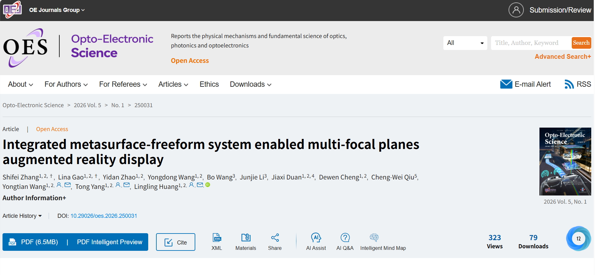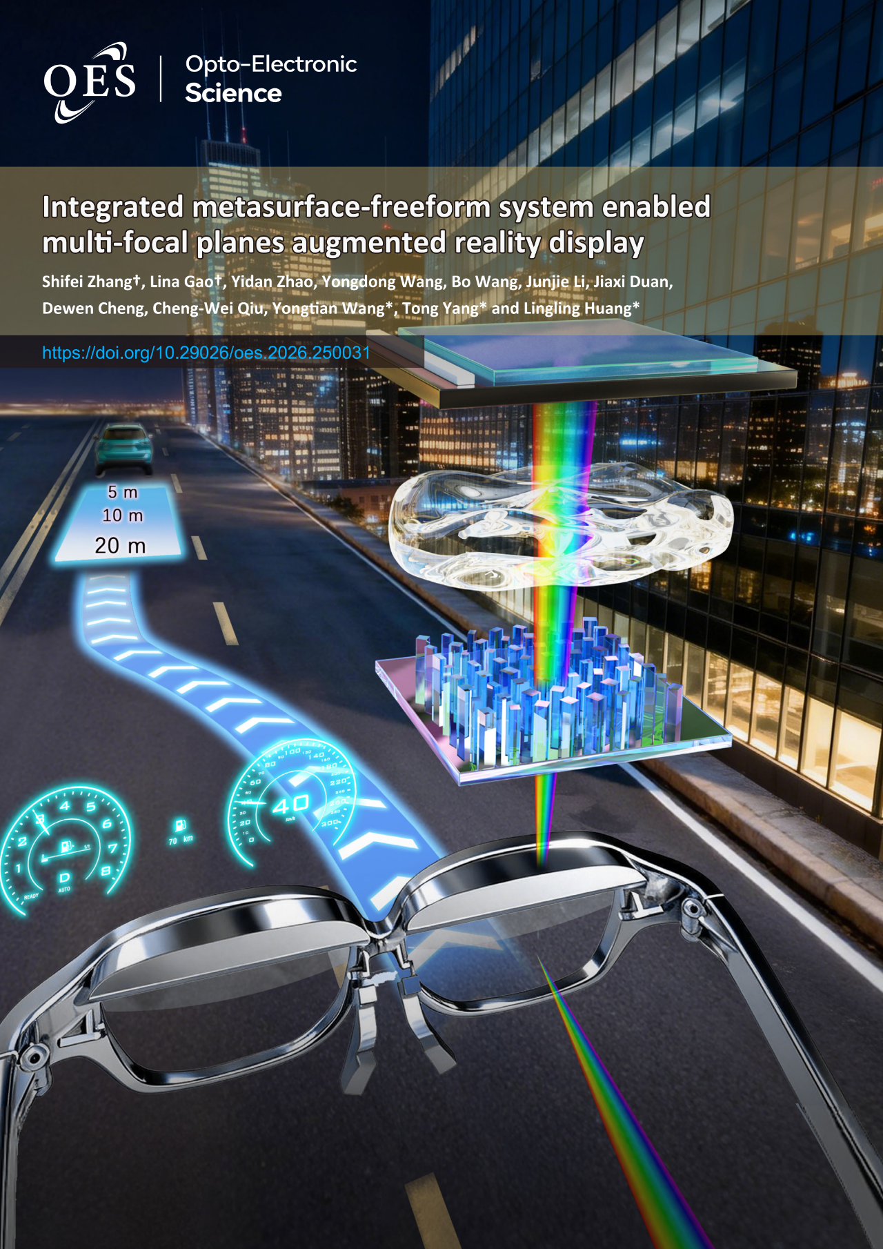 近日,由北京耐德佳显示技术有限公司与北京理工大学、新加坡国立大学等国内外顶尖科研团队联合攻关的重磅研究成果——《集成超表面-自由曲面系统实现的多焦平面增强现实显示》,正式发表于光电子领域权威期刊《Opto-Electronic Science》(2026年第5卷第1期,DOI:10.29026/oes.2026.250031)。