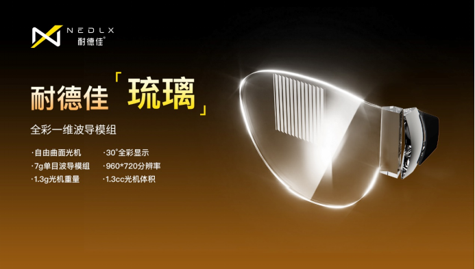 众所周知在AR眼镜向全天候佩戴、消费级普及迈进的赛道上,AR显示光学方案始终是核心突破口。耐德佳深耕自由曲面与波导光学技术,与国兆光电全新推出一维自由曲面波导模组“琉璃”,以极致的光学设计巧思,破解行业“全彩显示、轻量化、低漏光、成本可控”的多重难题,为信息提示类AR眼镜打造出高适配性的光学核心方案,尽显国产光学器件的硬核实力!