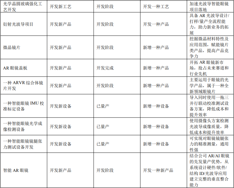 智能眼镜相关研发项目