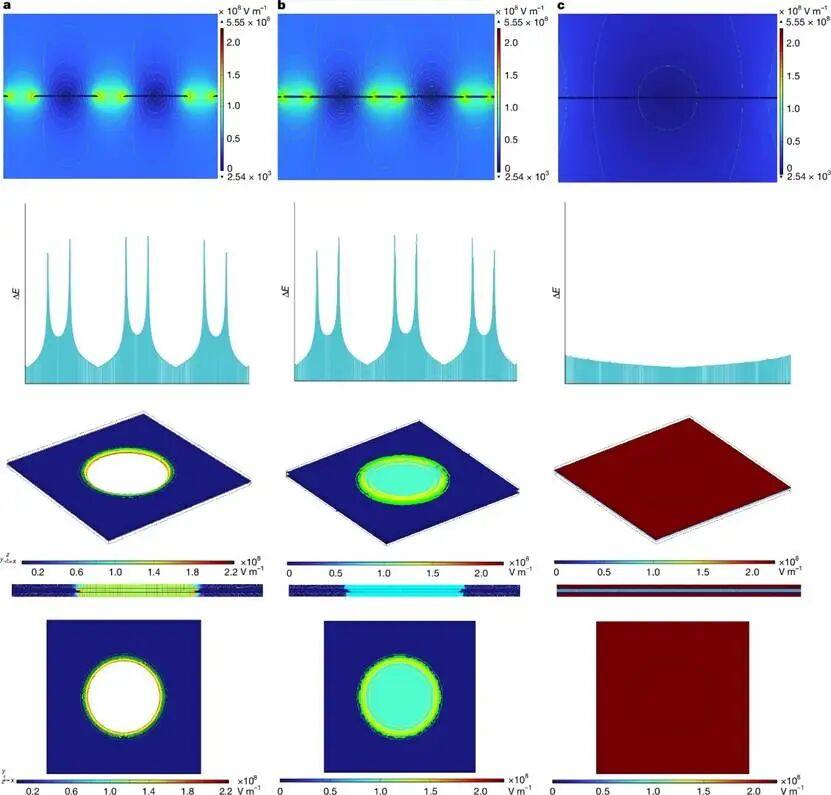 图4 施加偏置条件下像素微孔内电场分布的模拟© 2026 Springer Nature