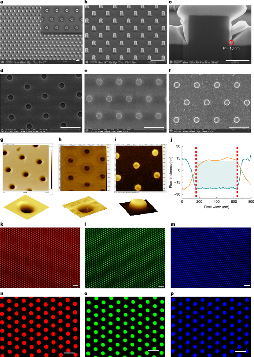 图1 亚微米RGB全彩QD发光层NP-TP工艺示意图及DAFD© 2026 Springer Nature