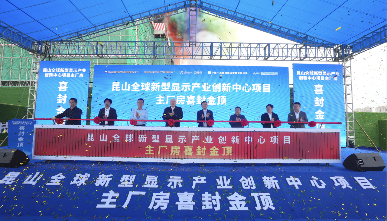 4月28日,昆山全球新型显示产业创新中心项目主厂房封顶仪式顺利召开,维信诺董事长、总裁张德强博士,苏州国显创新总经理朱修剑博士及中建一局建发公司、昆山恒昌等建设相关方领导出席并见证仪式。