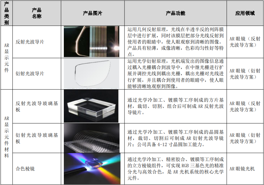 AR 光学业务产品矩阵如下: